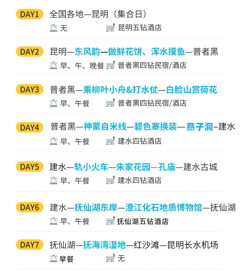 目的地:昆明 住宿方式:四钻+五钻酒店